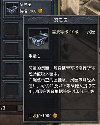 盟重杂货铺处聚灵匣出售由原来的13W金币改为20W金币/个